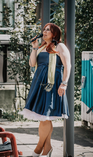 Moderatorin und die Tanzgruppe Maasaala aus Hannover nach einem gelungenen Tag der offenen Tür im Kunstkreis Laatzen am 12. Mai 2013
